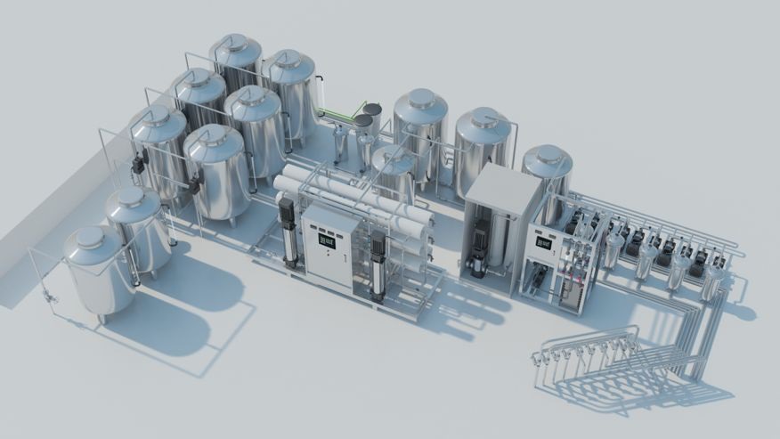 2. 項(xiàng)目采用變頻緩啟動、自動沖洗排放、化學(xué)清洗消毒、熱消毒、紫外線消毒、臭氧消毒等多種滅菌措施保證產(chǎn)品水質(zhì)。