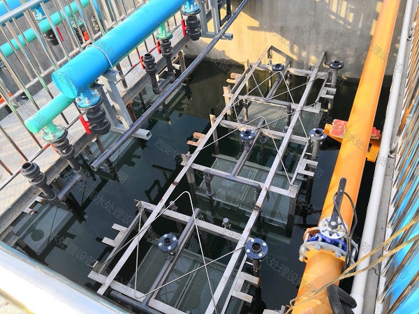 華浦一體化污水處理設備采用AO+MBR處理工藝,膜出水達標后排放,剩余污泥排入污泥池,定期外運處理。