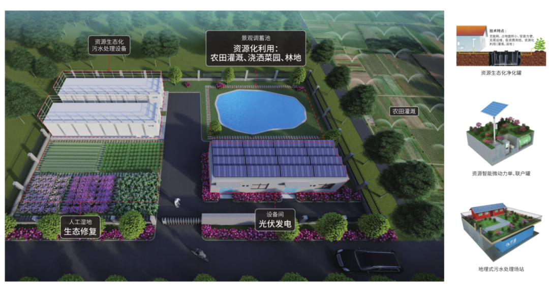 同時,因地制宜采用太陽能、風能、風光互補等清潔能源,通過提高污水治理綜合能效,采用低碳生態(tài)化污水處理技術(shù),達到農(nóng)村生活污水治理領(lǐng)域“碳中和”目標,實現(xiàn)污水消納和水資源的循環(huán)利用。